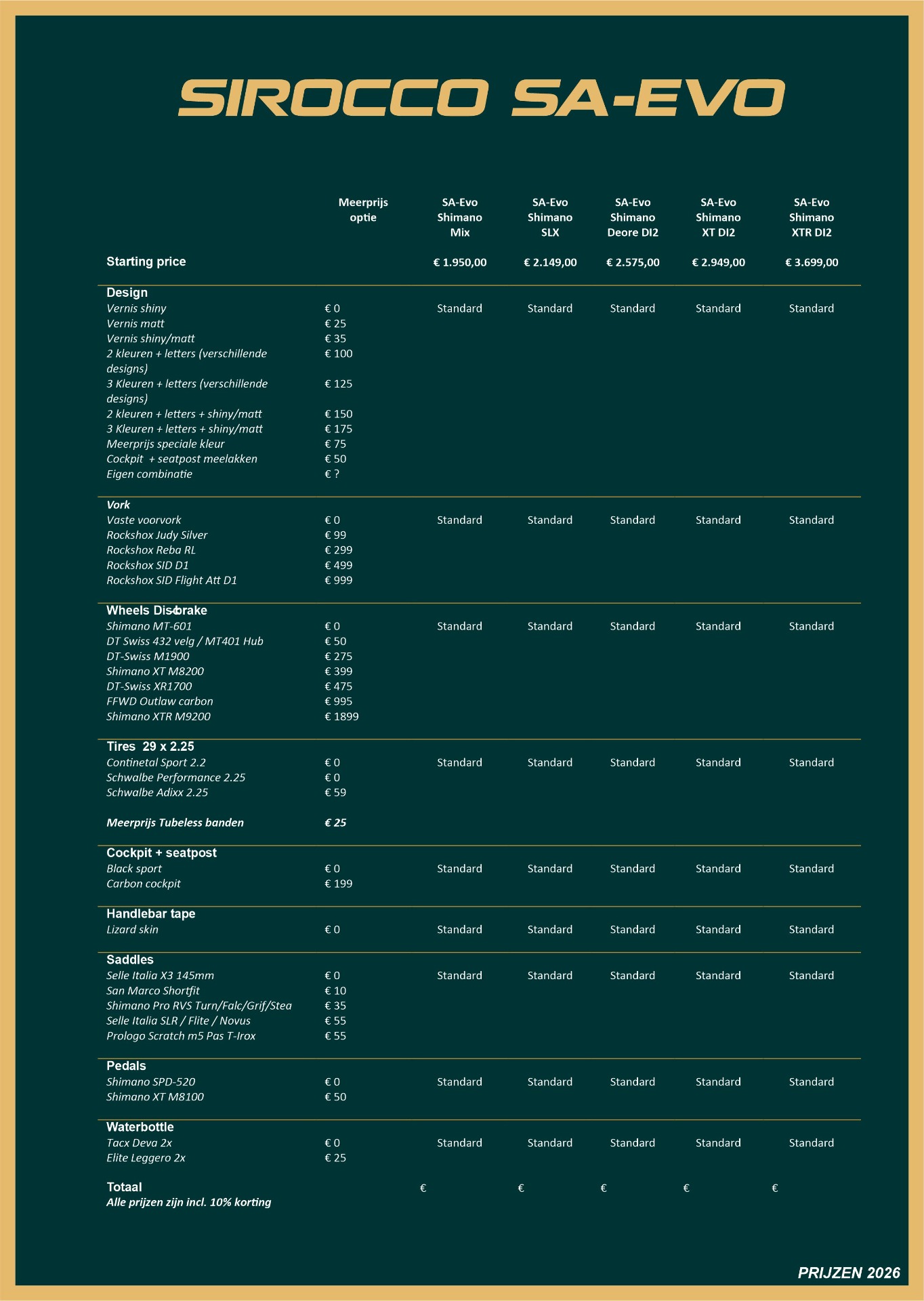 De Sirocco SA-Evo is standaard verkrijgbaar vanaf €1.950,-, voorzien van hoogwaardige onderdelen die duurzaamheid en betrouwbaarheid garanderen.